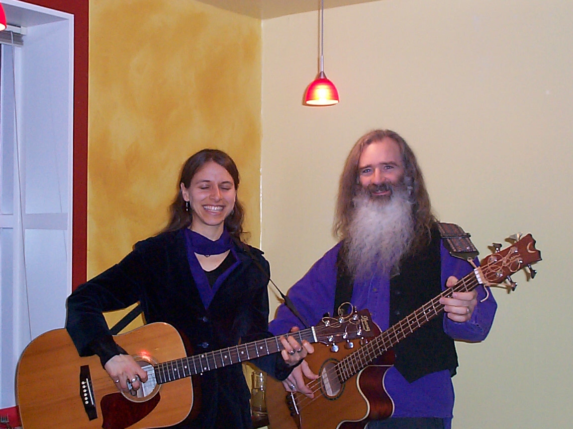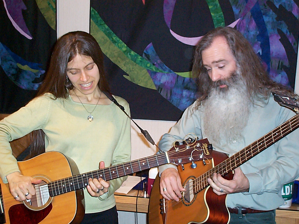 Brad Edwards, percussionist, behind Kris at a Dec. 2005 performance. |